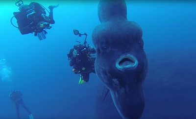 Một đoạn video như trong phim kinh dị vừa được post lên Youtube bởi nhiếp ảnh gia Miguel Pereira, người Bồ Đào Nha. Trong đoạn video này, người ta thấy một con vật có kích thước khổng lồ, choáng ngợp và vô cùng kỳ quái, giống như còn sót lại từ thời cổ đại khủng long. Có khoảng 3, 4 người thợ lặn bơi xung quanh nhìn bé xíu tưởng như 1 đớp của con vật là nuốt gọn luôn ...