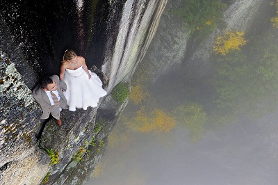 Nhiếp ảnh gia Jay Philbrick đã thực hiện bộ ảnh cưới mà hầu hết các thợ ảnh khác phải "lắc đầu tròn mắt" đó là đứng chụp trên đỉnh vách đá cheo leo ở độ cao 110 m so với mặt đất.
